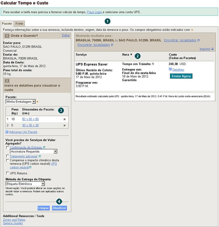 Nós ouvimos oque você tinha a dizer, e trabalhamos para lhe proporcionar a melhor experiencia possível utilizando o aplicativo Calcular Tempo e Custo. Com um novo design, a comparação dos serviços está mais rápida e fácil do que nunca. Você pode continuar realizando as mesmas tarefas às quais está acostumado, porém com acesso ainda mais rápido às informações de sua remessa e maior controle sobre os resultados de sua cotação. O novo e melhorado aplicativo Calcular Tempo e Custo apresenta as seguintes melhorias: