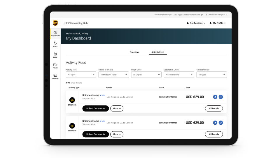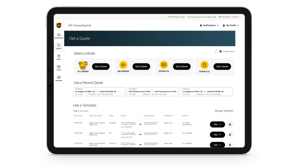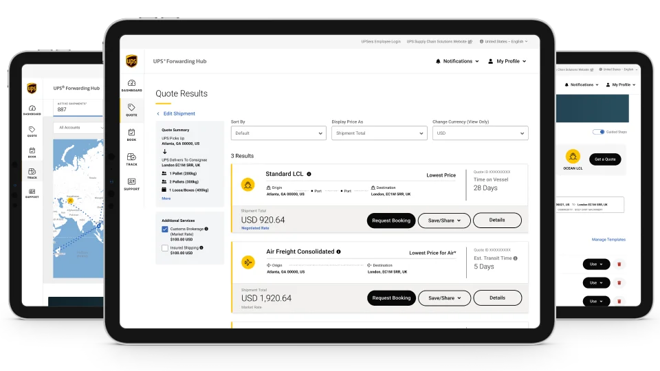 Get your shipment moving with one of the largest global freight forwarders in the business. Access our instant real-time database of freight quotes in the UPS® Forwarding Hub platform.